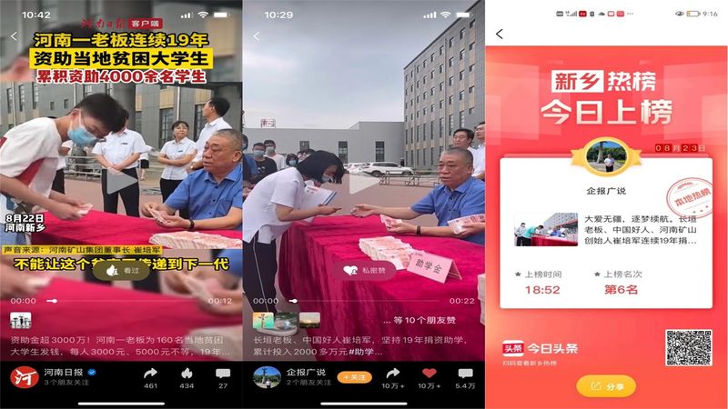 ▲堅持捐資助學(xué)大會不間斷,疫情并沒有阻擋我們愛心的傳遞,更加篤定我們對貧困大學(xué)生持續(xù)的關(guān)愛?!白屆總€上不起學(xué)的寒門學(xué)子,都能圓夢大學(xué)?!贝夼嘬姇浀纳钋橘碓福佑≡诿恳粚檬苜Y助貧困大學(xué)生的心田。
